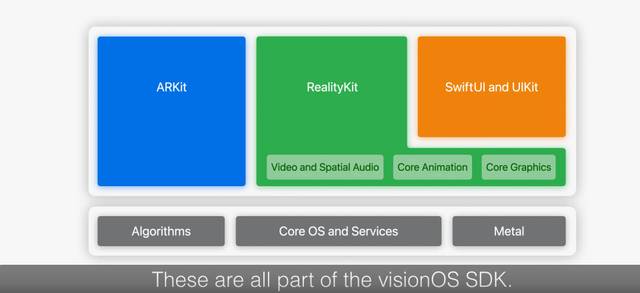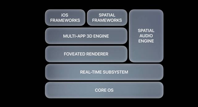 An app can be made up of multiple such content containers, all of which are managed uniformly by the spatial-computing OS.